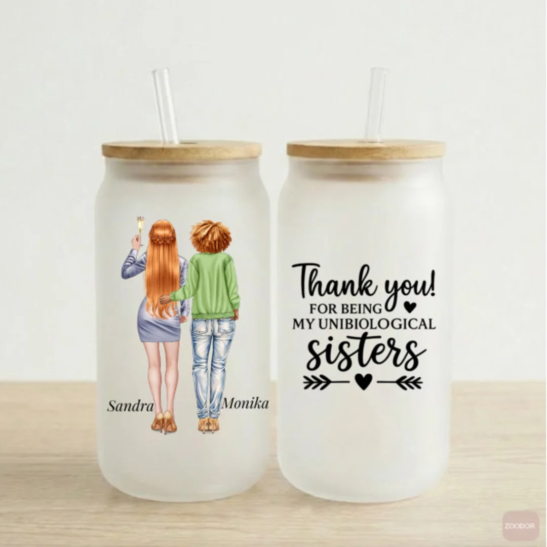 ✨ Produktbeschreibung: „Beste Freundinnen & Schwestern“ Trinkglas – Personalisiert